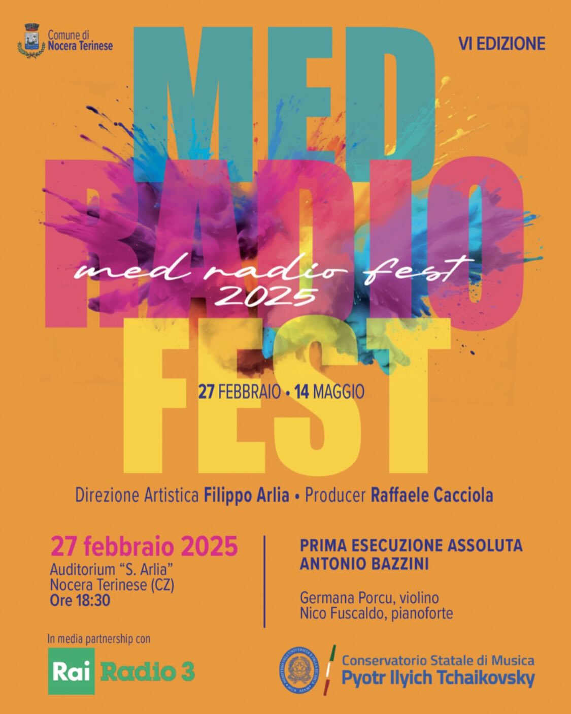 Opening concert featuring the world premiere of a work by Antonio Bazzini, performed by Germana Porcu (violin) and Nico Fuscaldo (piano). Artistic direction by Filippo Arlia; produced by Raffaele Cacciola; in partnership with Rai Radio 3.